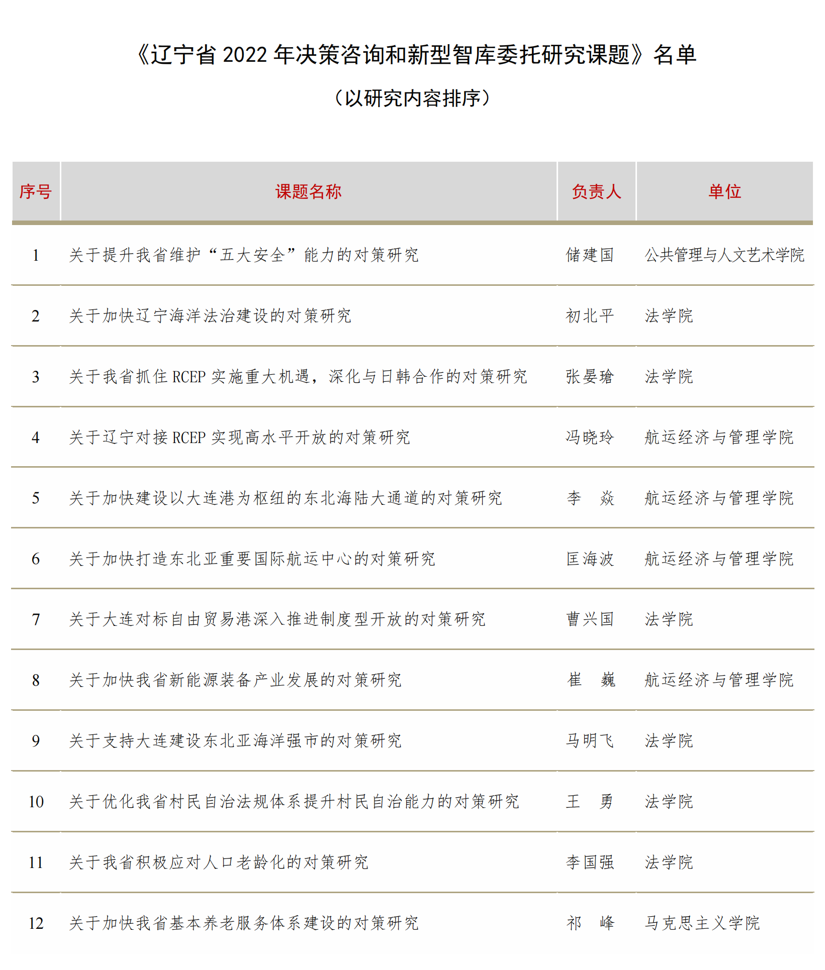 近日,省委、省政府决策咨询委员会公布《辽宁省2022年决策咨询和新型智库委托研究课题》(以下简称委托研究课题)名单。经省委、省政府决策咨询委员会办公室认真研究,最终确定BB贝博入选委托研究课题12项,入选数量位列省内高校第2位。