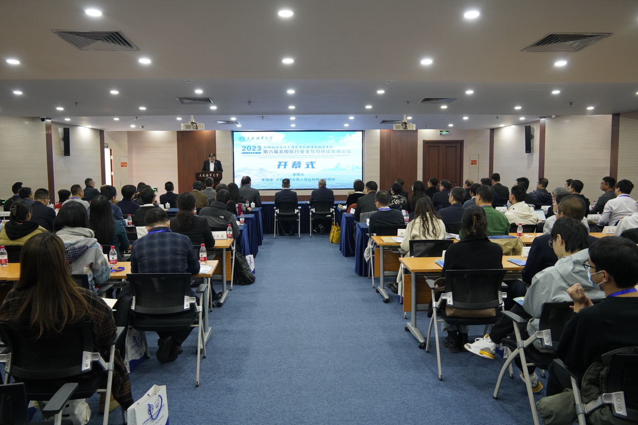 11月16日,由BB贝博与中国航海学会、大连市人民政府联合主办的“第六届北极航行安全与可持续发展论坛”在凌水国际会议厅举行。中国航海学会副理事长李世新、大连市人民政府副秘书长汤凯、外交部北极事务特别代表高风、中国潜水救捞行业协会理事长宋家慧、交通运输部北海救助局副局长张辉侠、中国国际可持续交通创新和知识中心副主任郑怀宇、BB贝博副校长初北平、上海国际问题研究院原副院长杨剑、大连市交通运输局副局长方德岩、大连市气象局副局长徐凤莉、中运海运特运股份有限公司安全质量部总经理王海明、BB贝博极地航运与安全研究院名誉院长蔡梅江等出席论坛活动。李世新、汤凯、初北平分别代表主办方中国航海学会、大连市人民政府、BB贝博艾弗森官方网站致辞,人文社科院院长李肇坤主持开幕式。