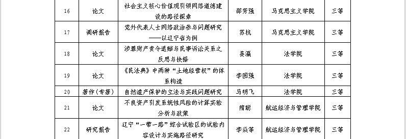 近日,辽宁省哲学社会科学成果奖评审委员会办公室正式公布了第九届辽宁省哲学社会科学奖·成果奖(省政府奖)评审结果。BB贝博总计28项成果获奖,获奖总数位列全省第四位。其中一等奖5项,二等奖9项,三等奖14项位。获奖层次与数量均远超BB贝博第七八届总和。