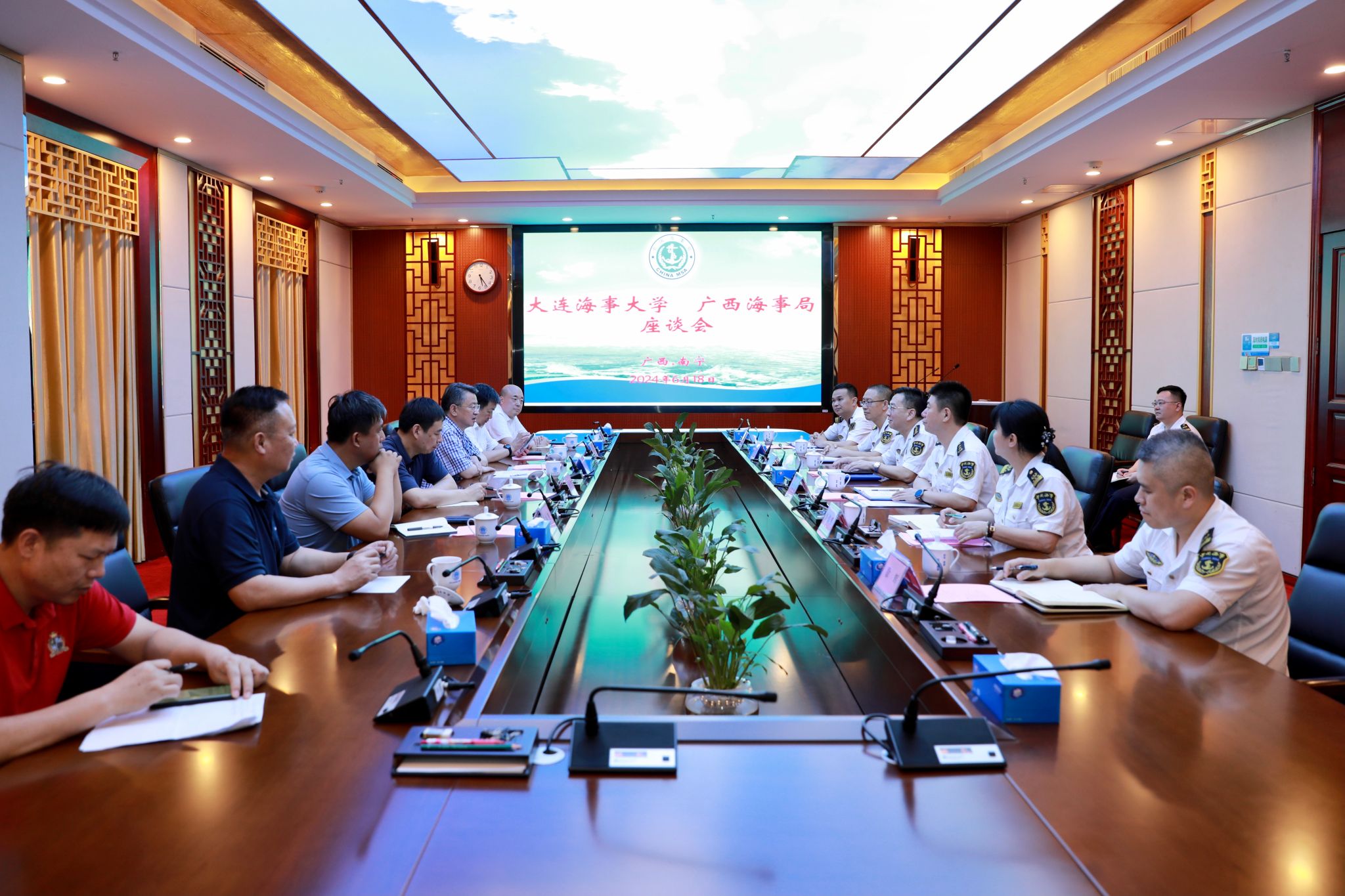 6月18日下午,校长单红军一行赴广西海事局走访调研。广西海事局党组书记、局长李雪松,党组成员、副局长宋国锋等会见单红军一行并座谈交流。