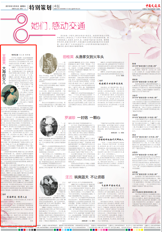 历史的每一步前行,都有女性奋斗的足迹。站在新中国成立70周年的坐标上,回望过去,广大妇女干部职工作出了卓有成效的贡献。新中国的铁轨上、航道间、蓝天中,每一处都留下她们奋斗的身影。榜样精神代代传,在她们的引领下,交通运输行业涌现出越来越多妇女先进典型。在这个属于广大妇女的美好节日,让我们再来感受她们涤荡岁月、激励你我、感动交通的巾帼榜样精神。
