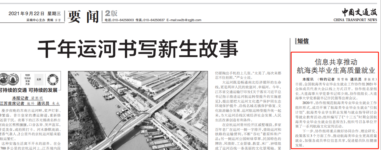 信息共享推动 航海类毕业生高质量就业 本报讯 (特约记者 隋雪梅 通讯员 唐振东)