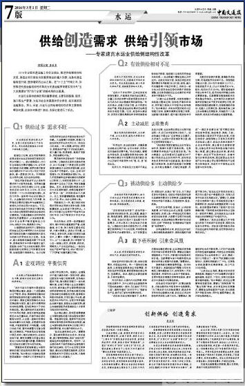 供给经济学的理论核心是:供给创造需求,市场适应供给。用一个通俗的比喻就是,以前制造蛋糕是适应市场需要,而供给经济学则强调,要把蛋糕做好做出特色,创造需求。因此,港航企业要创新服务,引领市场需求。