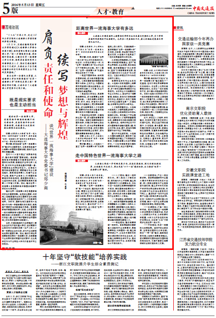 当前,交通运输肩负为全面建成小康社会当好先行官的重大责任,迫切需要行业高校充分发挥科技第一生产力和人才第一资源结合点的优势,成为行业创新驱动发展的重要引擎。因此,建设引领世界海事教育发展的一流海事大学,还承载着行业发展的殷切期望与迫切要求,这也是学校作为行业特色大学的价值追求和主动担当。