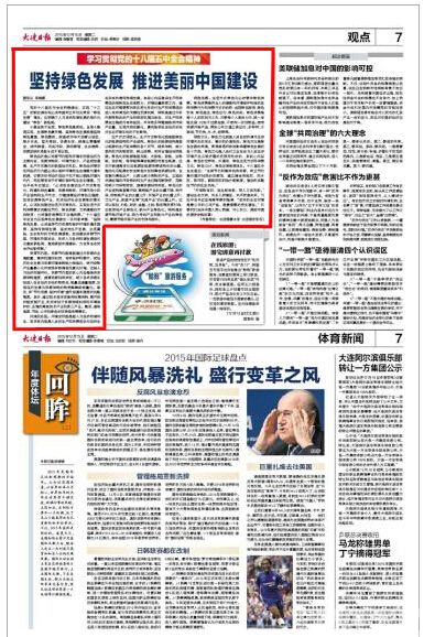 党的十八届五中全会明确提出,实现“十三五”时期发展目标必须牢固树立并切实贯彻“绿色发展”理念。这明确了人与自然和谐发展的现代化建设“绿色”新格局。