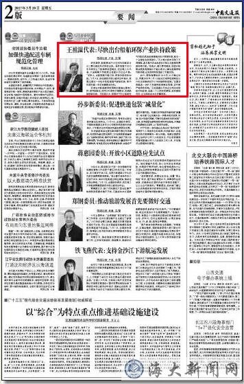 此外,国际海事组织2016年10月通过决议,同意2020年1月1日起在已有排放控制区以外的全球海域实行0.5%的硫排放控制。“这要求我国进一步扩大沿海排放控制区范围,实行更严格排放标准。”王祖温建议尽快出台相关的财政补贴政策,创造一个人民呼吸顺畅、政府减轻负担、企业降低成本的多赢局面。
