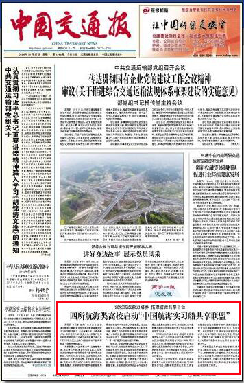 本报讯 (记者 杨莉) 10月15日,在交通运输部人事教育司和交通运输部海事局的大力指导和支持下,BB贝博艾弗森官方网站、上海海事大学、武汉理工大学、集美大学4所国内领先的航海类高校在辽宁省大连市签署了倡议书(详见2版),正式启动“中国航海实习船共享联盟”(简称共享联盟)。