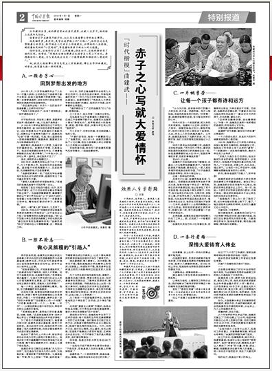 近日,中宣部向全社会公开发布曲建武的先进事迹,授予他“时代楷模”荣誉称号。曲建武正是加强和改进高校思想政治工作、办好中国特色社会主义大学实践中涌现出来的先进典型,是立德树人的教师楷模。