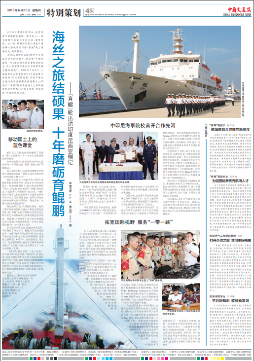 为期1个月的“海上丝路·和谐之旅”访问活动圆满结束了,作为“育鲲”轮船长,首先,我感受到了祖国的强大和大连BB贝博的影响力,我感到无比自豪和骄傲;而在印尼访问期间,通过与当地高等航海院校的交流访问,我深深地感受到航海教育国际化的重要性。我相信此次访问活动将把我国与印尼高等航海教育方面的交流与合作推向一个新的高度。我希望今后能够更多地开展此类出访活动,让更多的人去了解航海、海员、高等航海教育,并促进各国间高等航海教育方面的交流与合作,为加快建设海洋强国贡献力量。