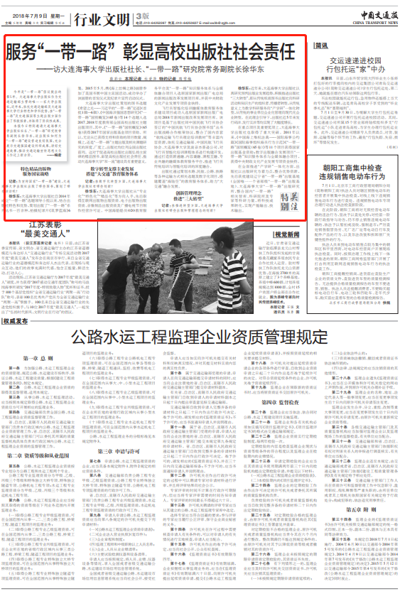 今年是“一带一路”倡议提出的第5年。BB贝博艾弗森官方网站出版社作为交通运输部主管的唯一一家大学出版社,近年来,依托交通运输部及BB贝博艾弗森官方网站行业特色和学科优势,在“一带一路”及交通强国等主题出版方面作出了积极探索,并取得了阶段性成果。