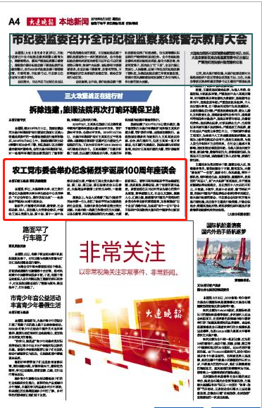 座谈会上,与会人员观看了短片《杨烈宇同志光辉一生》,追忆了杨烈宇同志为国家经济社会发展、为我市多党合作事业做出突出贡献。大连市统一战线工作做出的巨大贡献,以及在教育、科研战线取得的巨大成就。大家纷纷表示,要学习和传承杨烈宇同志热爱祖国、追求真理、拼搏奋进、勇于创新的高尚品质,紧密团结在以习近平同志为核心的党中央周围,高举爱国主义、社会主义旗帜,凝聚人心,汇聚力量,继续谱写中国共产党领导的多党合作事业新的辉煌篇章,为协调推进“四个全面”战略布局,为实现“两个一百年”奋斗目标和中华民族伟大复兴的中国梦作出新贡献。