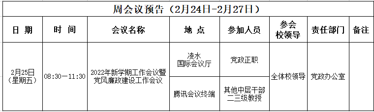 周会议预告(2月24日-2月27日)