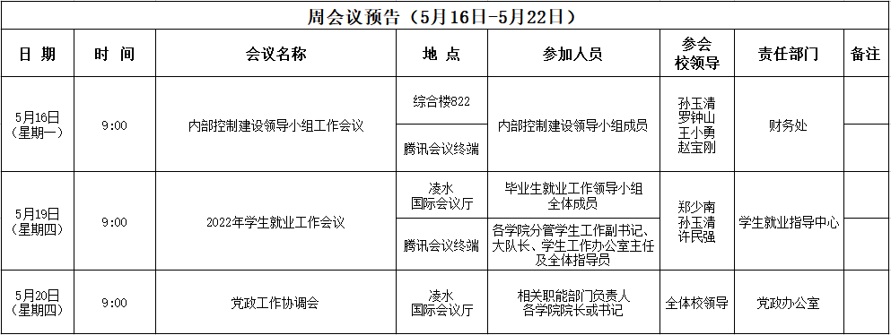 周会议预告(5月16日-5月22日)
