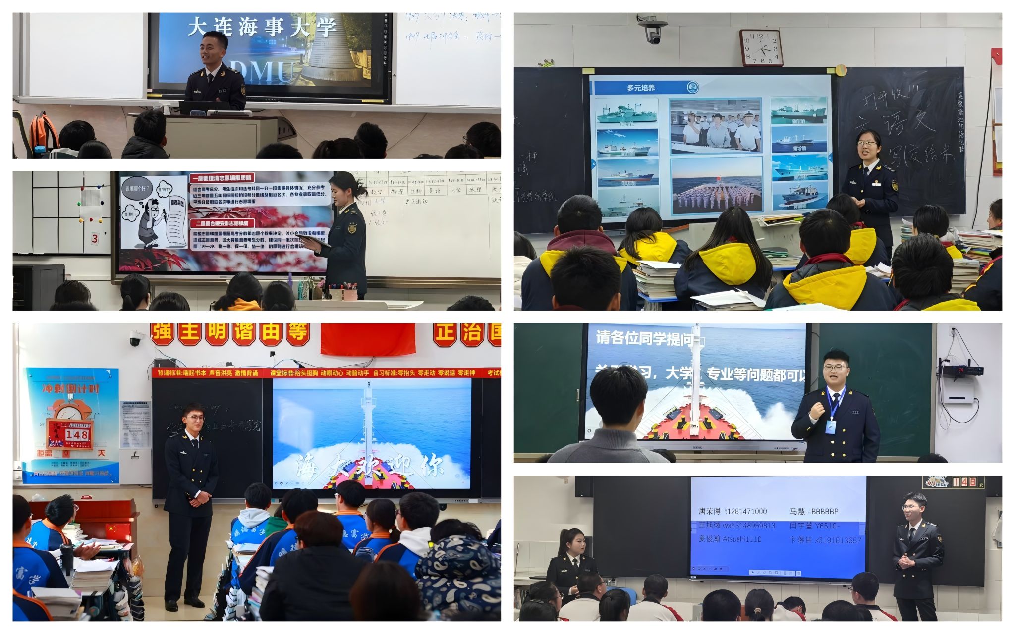 来自船舶与海洋工程学院的“追求卓越”团队以母校北票市高级中学为宣传阵地,构建“沉浸体验+陪伴指导”宣传模式,向高中学生及家长展现BB贝博风貌:从“百年学府底蕴”到“特色学科优势”,从“多彩校园生活”到“广阔就业前景”,团队通过精心制作宣传材料和视频展示BB贝博办学特色,同时聚焦船舶与海洋工程学科,将海事相关学科专业知识科普与“海洋强国战略”历史使命、学校“双一流”建设及半军事管理等特色相结合,在高中母校产生了积极热烈的反响。实践中,他们坚持“即时解答+长期互动”相结合的形式,除了实践现场答疑解惑外,还建立微信群、QQ群,与高中学子和家长建立长期联系,鼓励母校优秀学子积极报考BB贝博。