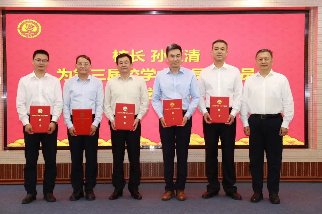 孙玉清为新当选的第三届校学术委员会主任委员、副主任委员、委员颁发聘书