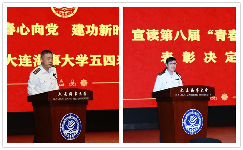 航海学院党委副书记赵帅宣读“三红两优”表彰决定,环境科学与工程学院党委副书记商非宣读第八届“青春人物”表彰决定。