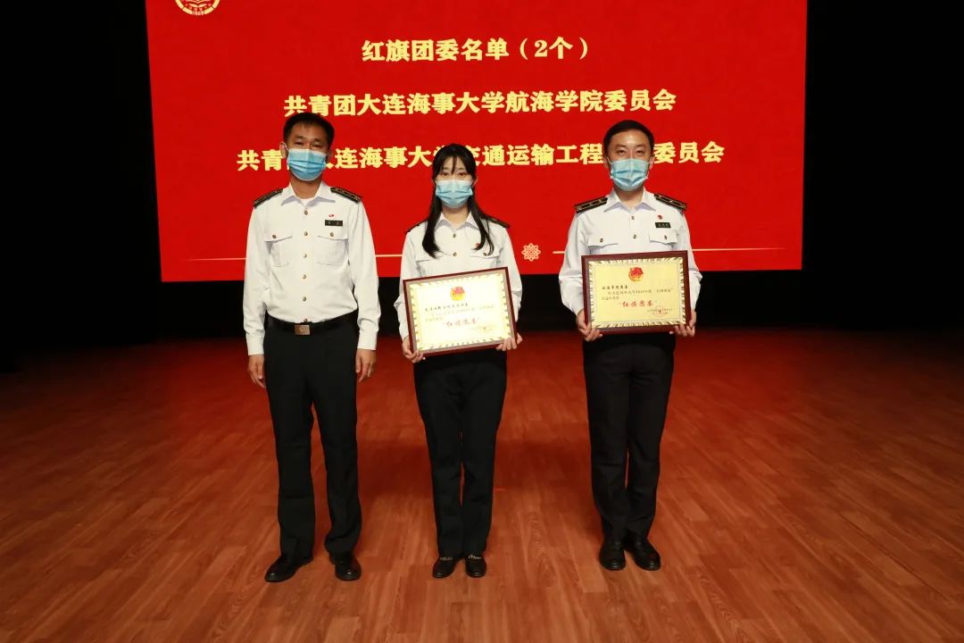 轮机工程学院党委副书记安宁为五四红旗团委颁奖,信息科学技术学院党委副书记张肃为五四红旗团总支颁奖,交通运输工程学院党委副书记慕涛为五四红旗团支部颁奖,航运经济与管理学院党委副书记王振兴为优秀团员、优秀团干部颁奖,法学院党委副书记谭冰为第八届“青春人物”颁奖。