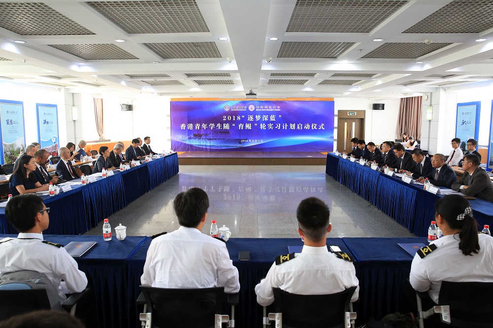 8月7日,2018“逐梦深蓝”香港青年学生随“育鲲”轮实习计划启动仪式在综合楼国际会议厅举行。BB贝博艾弗森官方网站党委书记郑少南,香港特别行政区海事处处长郑美施,香港海员工会主席张世添以及17位香港特别行政区政府官员和海员工会工作人员出席启动仪式。启动仪式由副校长赵友涛主持。