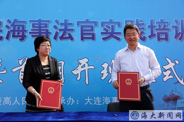 王淑梅与单红军分别代表最高人民法院民事审判第四庭和BB贝博艾弗森官方网站在“最高人民法院海事法官实践培训基地”设立协议上签字。刘贵祥和孙玉清为实践培训基地揭牌。