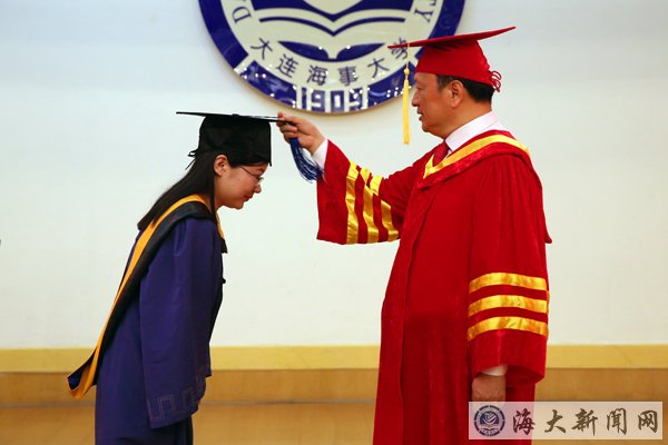 毕业典礼结束后,校学位评定委员会主席、校长孙玉清为学位获得者颁发学位证书、侧移流苏并合影留念。