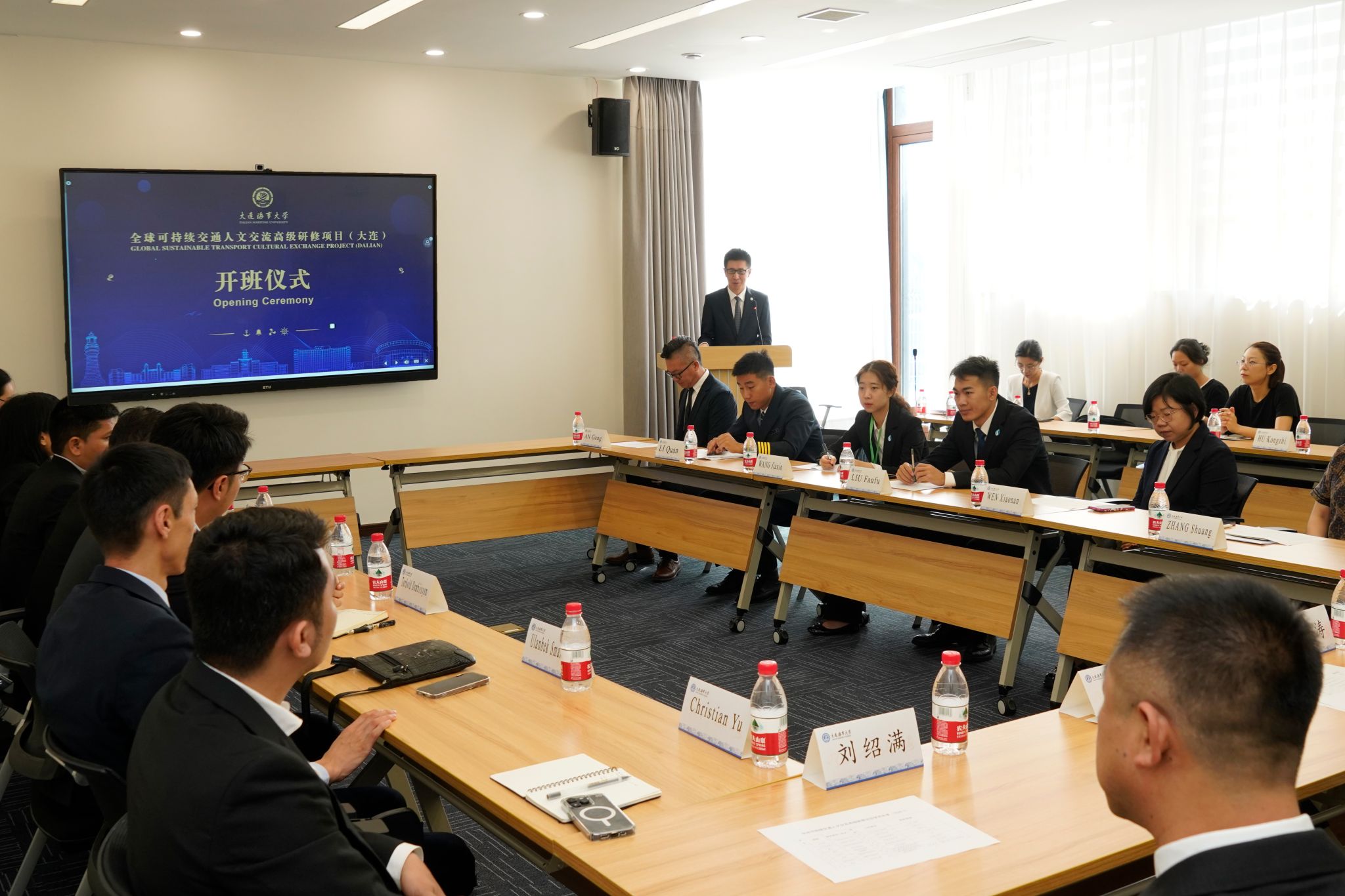 9月12日下午,首期全球可持续交通人文交流高级研修项目大连站开班仪式在BB贝博艾弗森官方网站法学院4楼会议室举行。BB贝博艾弗森官方网站副校长赵友涛、中国国际可持续交通创新和知识中心交通国际问题研究所副主任郭杰、辽宁省交通运输厅科技创新处三级调研员朱彪等领导及嘉宾,以及研修项目学员——来自菲律宾、吉尔吉斯斯坦、蒙古、缅甸、尼泊尔、泰国、乌兹别克斯坦、越南等国家的8名交通运输领域政府官员和专家学者出席活动。开班仪式由学校国际合作与交流处处长马明飞主持。