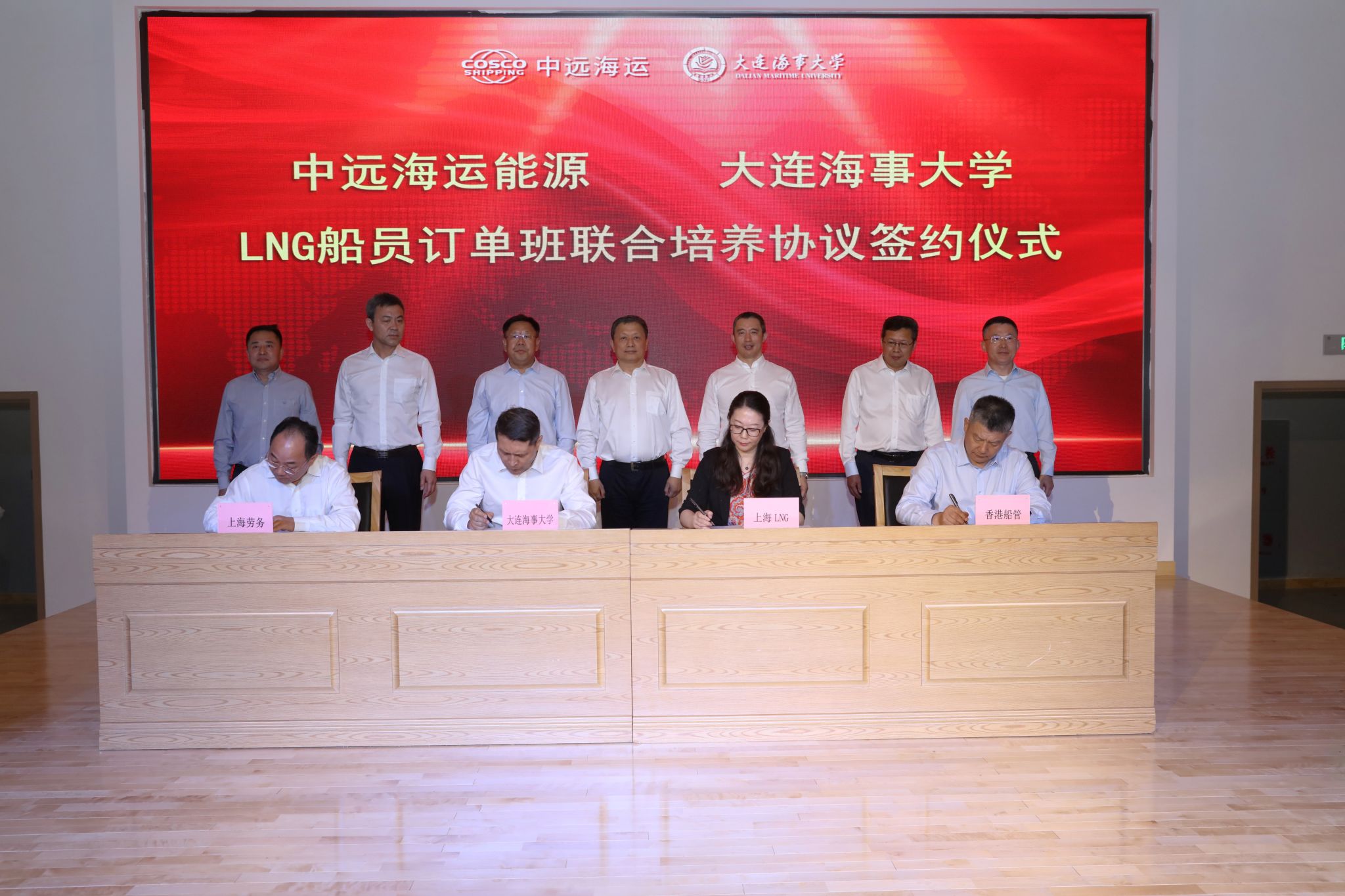 上海中远海运LNG、中远海运船员上海分/子公司、香港船管、BB贝博艾弗森官方网站等代表共同签署上海中远海运LNG船员订单班联合培养协议。