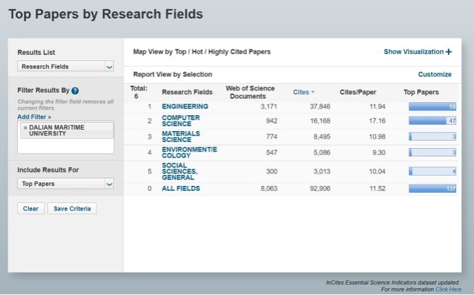 基本科学指标数据库(Essential Science Indicators,简称ESI)是衡量科学研究绩效、跟踪科学发展趋势的基本分析评价工具,它是基于科睿唯安公司Web of Science(SCIE/SSCI)所收录的全球12000多种学术期刊的1000多万条文献记录而建立的计量分析数据库。目前,ESI已成为世界范围内普遍用以评价高校、学术机构、国家/地区国际学术水平及影响力的重要评价指标工具之一。