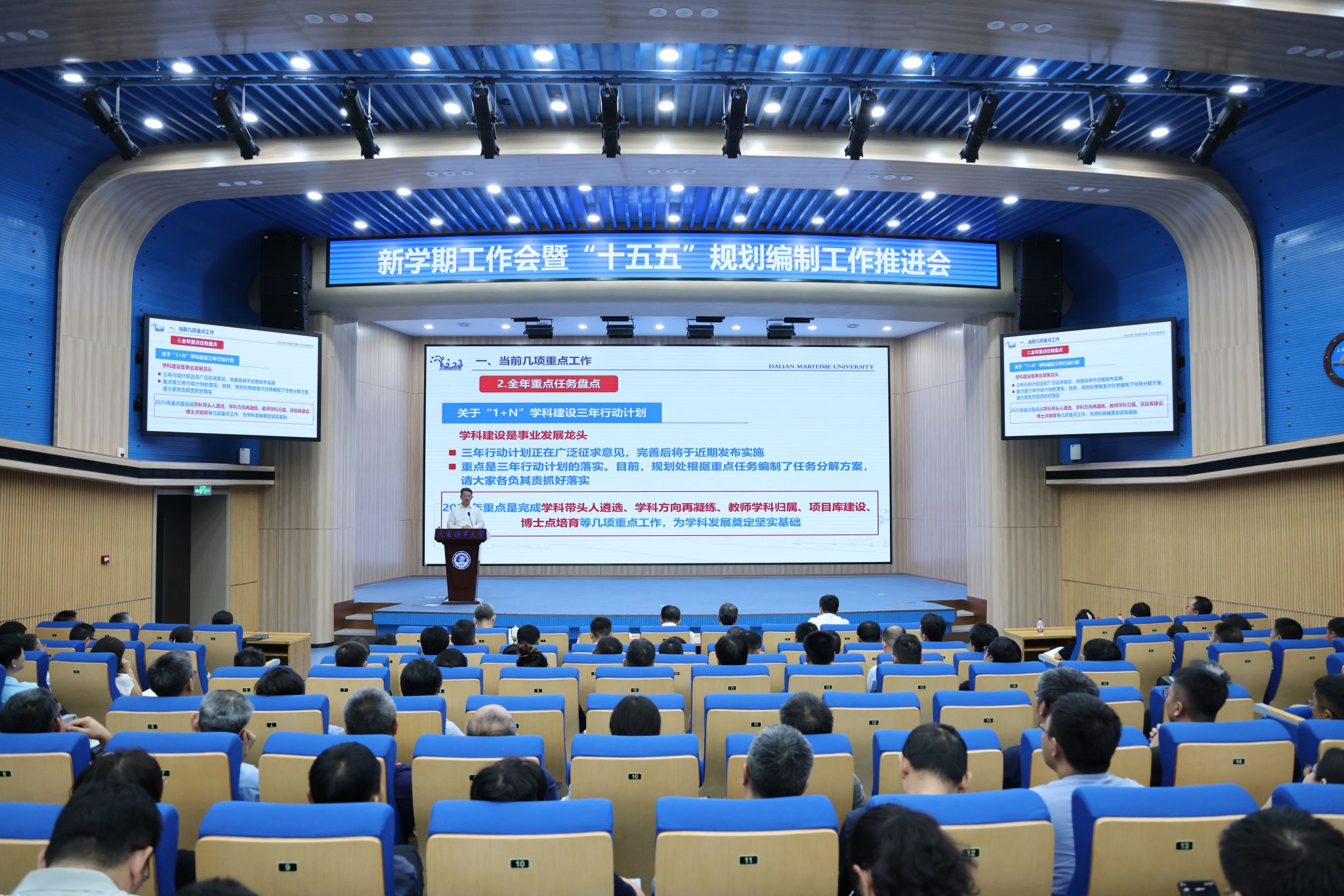 单红军向全校干部职工致以新学期的问候,并围绕“十五五”规划编制和下一步重点工作进行部署。他要求,要有计划有组织地筹备“双一流”评估验收工作,重点抓好 “1+N”学科建设三年行动计划下一步的组织落实;要高标准落实人才培养质量提升方案,尽快探索形成具有BB贝博特色的卓越工程师人才培养模式;要全面推进交通强国建设试点任务取得新进展并科学谋划新一轮试点方向;要一体推进平台、团队、专业技术人才队伍建设,推动高水平、标志性科研成果产出。他强调,“十五五”规划布局要聚焦建设“国内顶尖、世界一流的研究型海事大学”的目标定位,着力构建“1+10+15+X”的规划体系,加快形成“一海两域”高质量特色发展格局;要把握当前发展阶段、把握规划主题主线、把握质量特色贡献,坚持扎根行业、面向海洋、聚焦海事,围绕服务加快建设交通强国等国家战略和推动学校高质量发展,切实做到聚焦问题要“关键”、指标设定要“积极”、任务举措要“实用”。他鼓励全体教职工在BB贝博高质量发展进程的关键历史时期,能够同心戮力、并肩作战,主动担负起各自的责任,做出无愧于时代、无愧于BB贝博前辈的贡献。