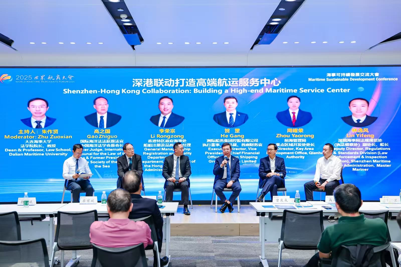 圆桌对话聚焦“全球海事产业链合作促进航运绿色智能新业态发展”和“深港联动打造高端航运服务中心”两个议题,分别由BB贝博艾弗森官方网站航运发展研究院研究员张爽和BB贝博艾弗森官方网站法学院院长、教授朱作贤主持。交通运输部水运科学研究院院长柳鹏、意大利船级社海事业务发展副总裁Pino Spadafora、全球甲醇行业协会中国区首席代表赵凯、香港海运工会常委、船长周伟、国际海洋法法庭原法官、BB贝博艾弗森官方网站智库首席专家高之国、香港特区政府海事处船舶注册及品质部总经理李荣宗、洲际船务集团控股有限公司执行董事、副总裁、首席财务官贺罡、前海管理局重点区域开发处处长周耀荣、深圳海事局法规规范处(执法督察处)副处长、船长林逸风9位涉海领域资深学者围绕主题展开深入交流。