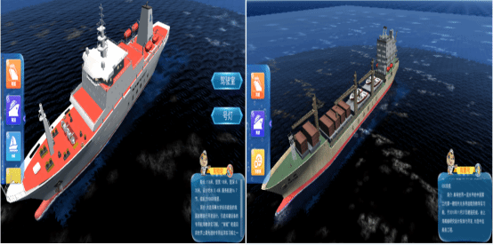 船舶操纵与避碰虚拟仿真教学创新实验室按照“虚实结合、以虚补实”的原则,以船舶海上航行过程中遇到的不同会遇局面为切入点,选取对遇局面、追越局面、交叉相遇局面等3种船舶会遇局面及能见度不良情况,采用3D建模、动画、语音识别、人机交互等技术自主研发了船舶操纵与避碰虚拟仿真实验,以解决现实中专业化航海人才培养的瓶颈。