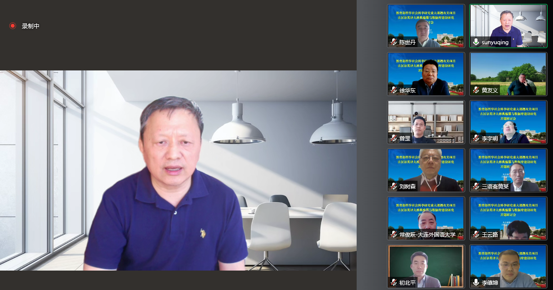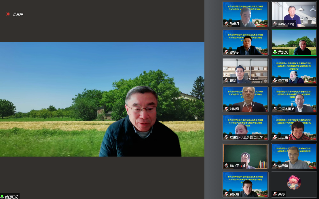 3月27日,BB贝博人文社科研究院徐华东编审担任首席专家的2021年度教育部哲学社会科学研究重大课题攻关项目“古汉语英译大辞典编纂与数据库建设研究”开题研讨会以线上视频会形式召开。BB贝博校长孙玉清、副校长初北平出席会议,人文社科研究院院长李肇坤主持会议。