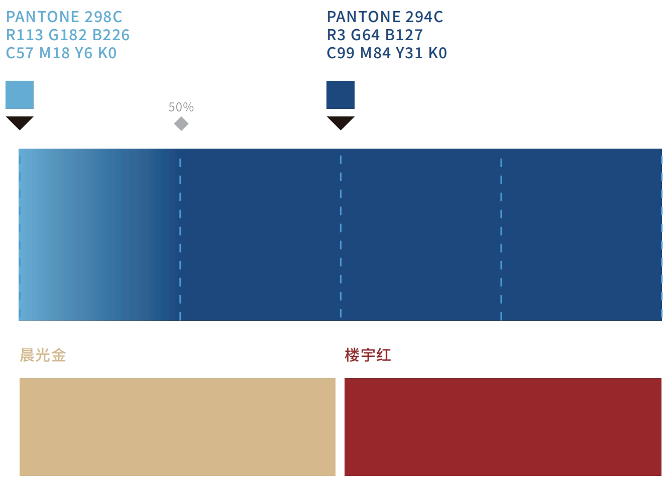 为确保校徽的可识别性、完整性及规范性特规范校徽的安全空间。在安全空间规定范围内禁止侵入其它图形、文字或色彩,以免干扰校徽清晰的识别。安全空间的设定为2X向四周扩展,形成正方形区域。