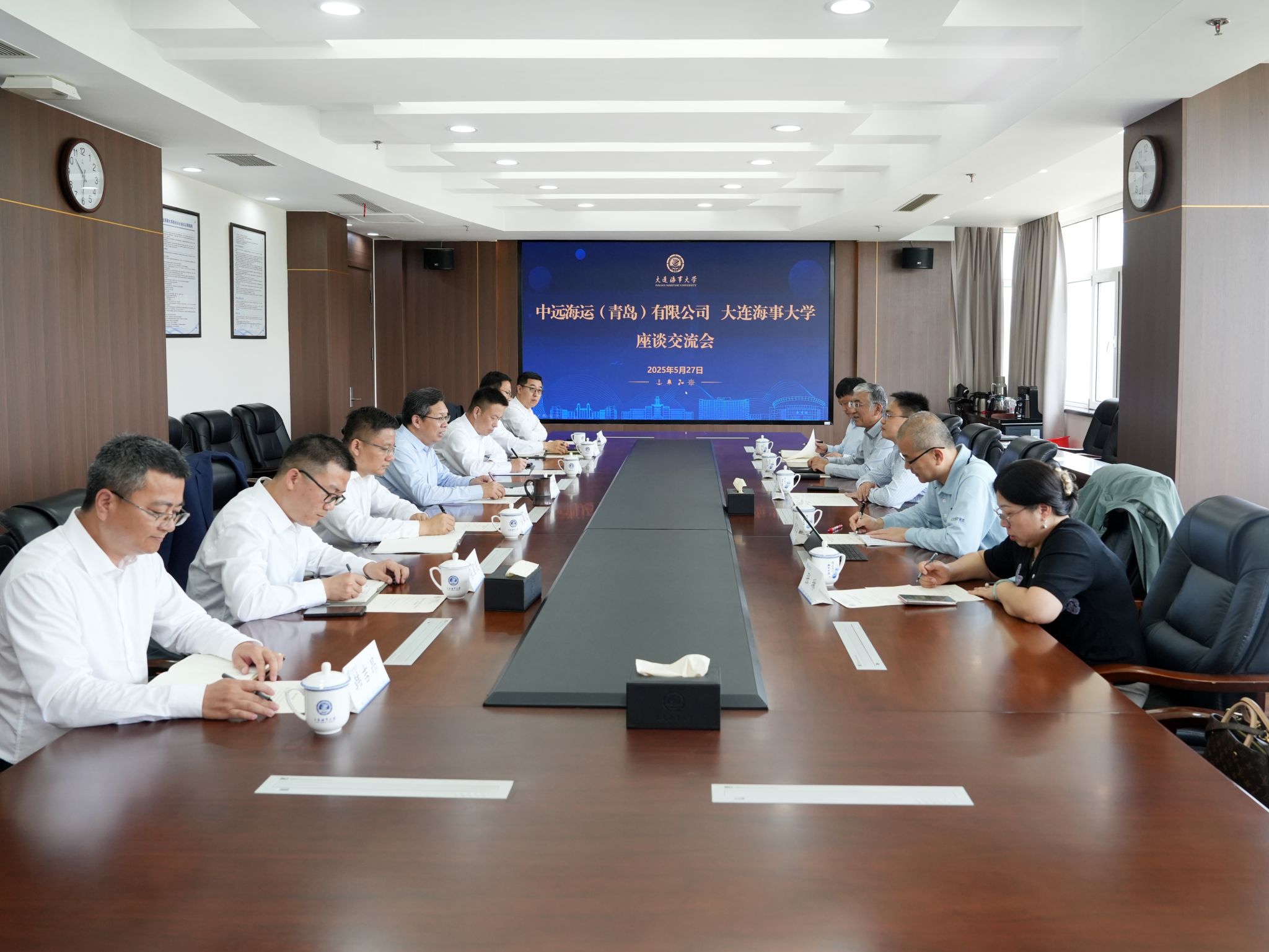 5月26日至27日,中远海运(青岛)有限公司董事长、党委书记金鑫,党委委员、纪委书记刘家琰等一行来校调研,党委书记许民强会见金鑫一行并座谈交流。座谈中,许民强代表学校对金鑫一行的到来表示欢迎,并简要介绍了学校的历史发展脉络和近年来的建设发展情况。他表示,中远海运(青岛)有限公司作为中远海运集团的科技创新工作策源地,发展方向与学校相关科研领域高度契合,双方互动交流密切,已形成了良好的工作基础。学校衷心希望与中远海运(...